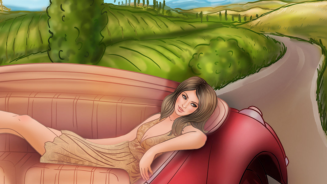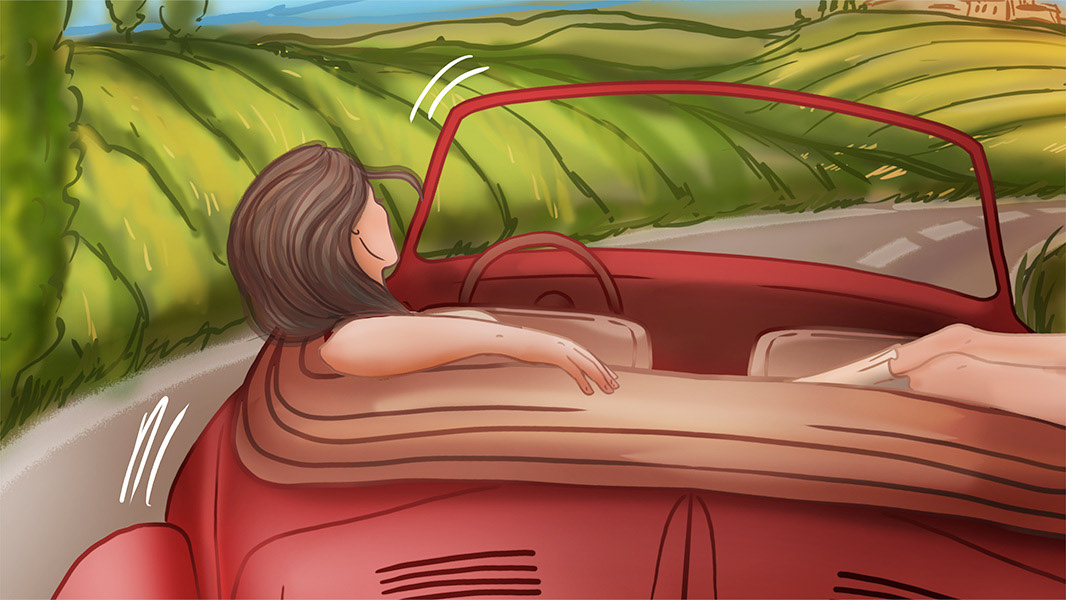 Set on the picturesque roads of Provence or Tuscany on a hot day, the heroine drives an old-school Volkswagen Beetle convertible. When the car breaks down, the heroine, unfazed, continues to enjoy the moment, letting down her hair and savoring Dove chocolate.