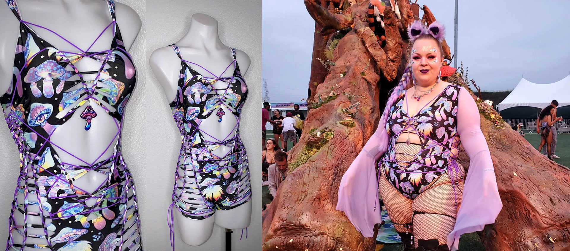 My mushroom pattern (which you actually can buy here) is getting quite popular in edm community now. So I’d like to share some examples of rave clothes with it.